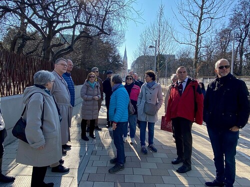 Bei strahlendem Frühlingswetter machte sich das Vikariat Wien Stadt am 28. Februar auf den Weg durch das Dekanat 4/5. Bischofsvikar, Büroteam des Vikariats, Vikariatsrät:innen und Dechanten folgten der Einladung zu einer vielseitigen Entdeckungsreise, die barocke Pracht, moderne Stadtentwicklung und gelebte Caritas miteinander verband.