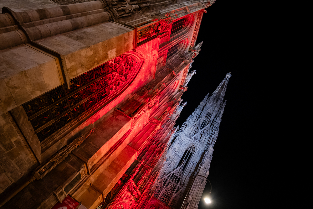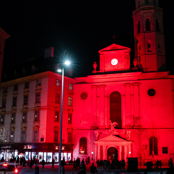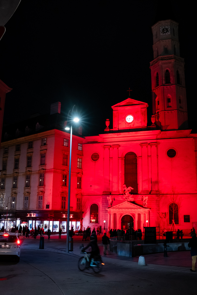 Das Hilfswerk Kirche in Not initiierte den „Red Wednesday“, um auf Christenverfolgung hinzuweisen. Viele Kirchen, Klöster und das Bundeskanzleramt sowie diePräsidentschaftskanzlei leuchten in der Erzdiözese Wien und Österreich am Mittwoch rot. Wir waren mit der Kamera dabei.