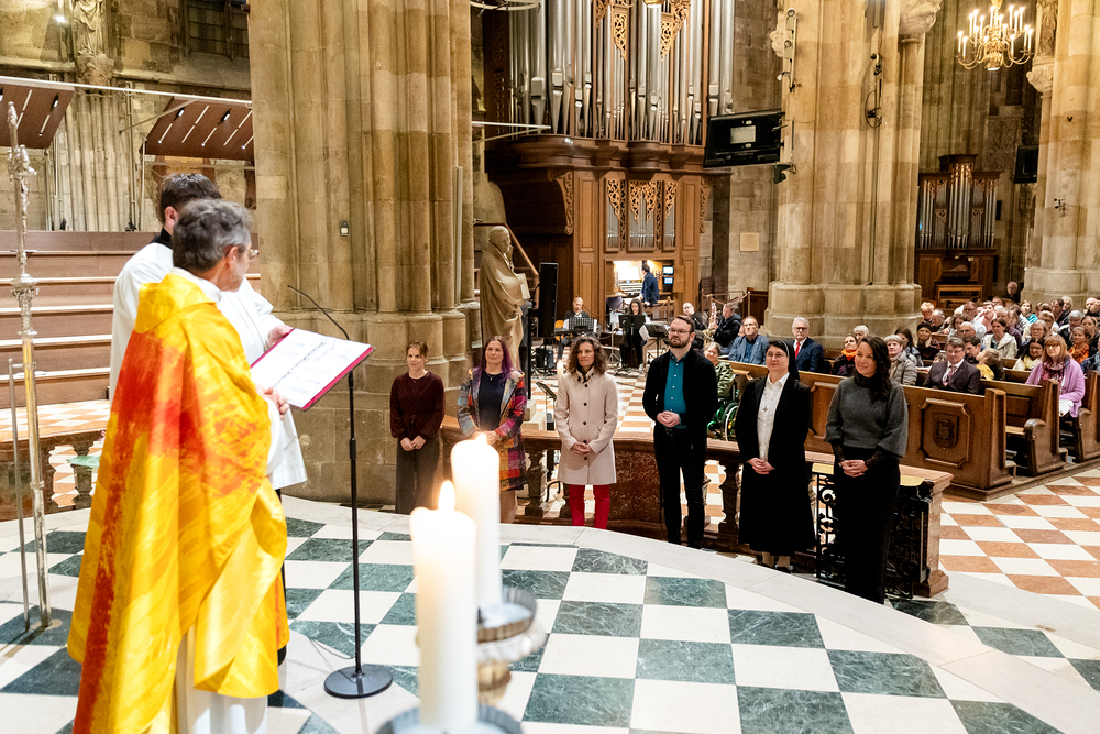 Am Donnerstag, 2. Oktober 2025,  wurden neun Frauen und drei Männer vom Apostolischen Administrator Josef Grünwidl im Stephansdom als PastoralassistentInnen, KrankenhausseelsorgerInnen und PflegeheimseelsorgerInnen in den diözesanen Dienst gesendet. Wir waren mit der Kamera dabei.