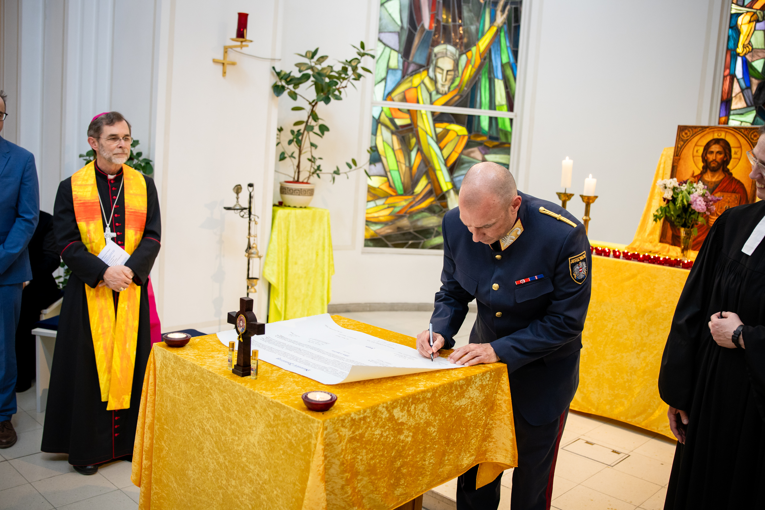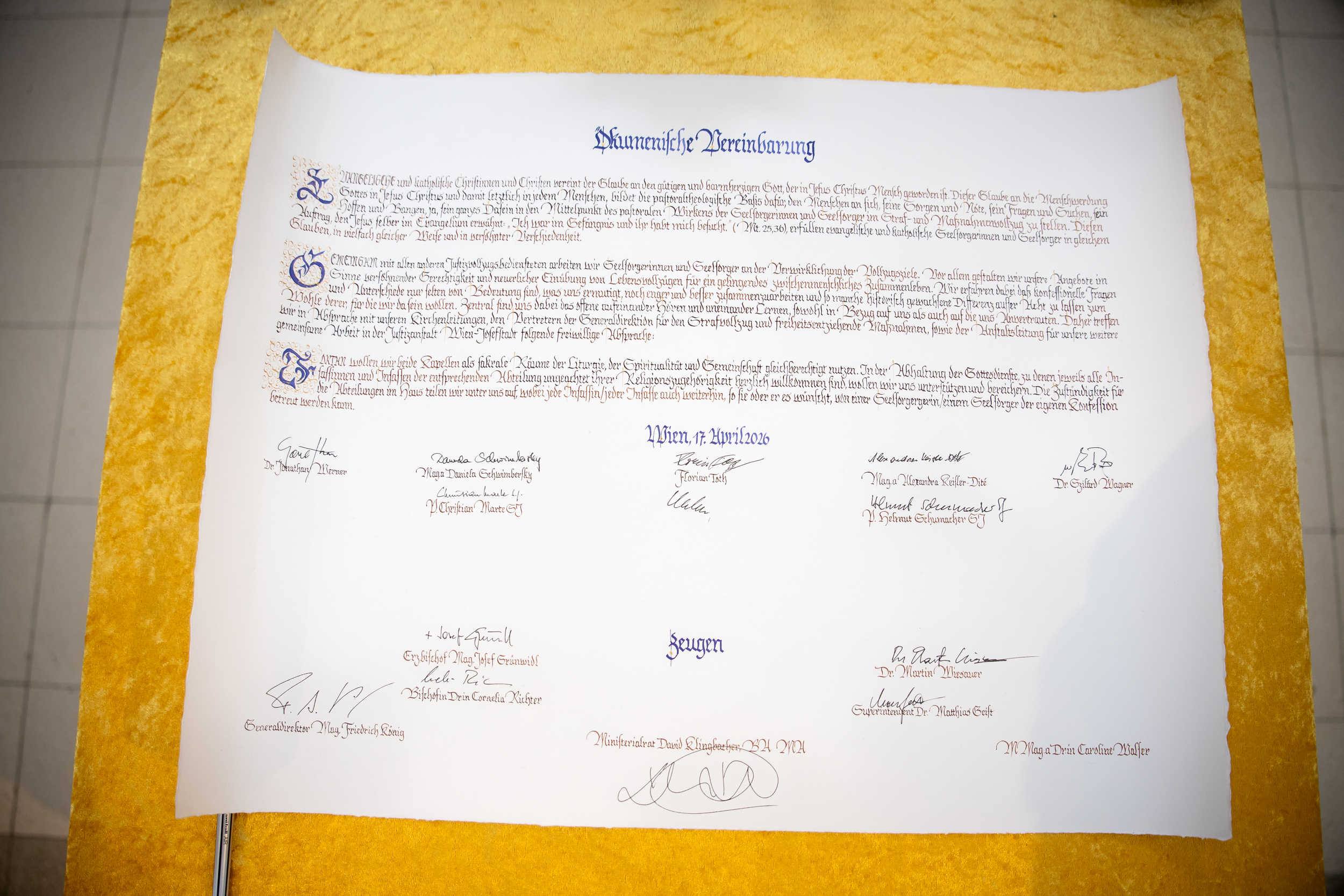 Am Freitag, 17. April 2026, unterzeichneten Erzbischof Josef Grünwidl, die evangelische Bischöfin Cornelia Richter und die Gefängnisseelsorger der Justizanstalt eine Erklärung zur intensiven Zusammenarbeit im größten Gefängnis Österreichs.