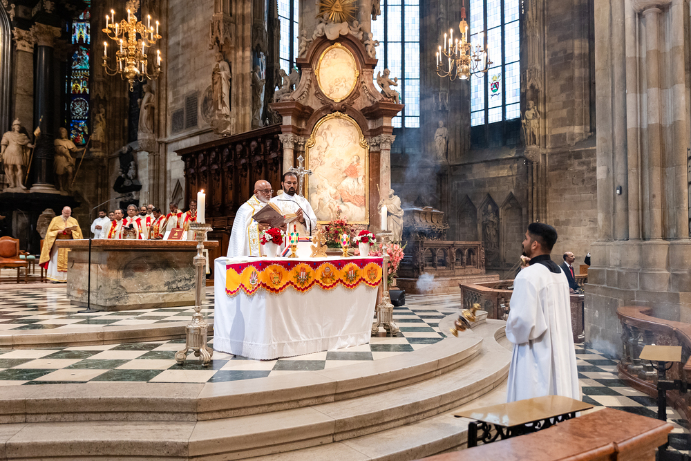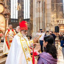 Das Oberhaupt der zweitgrößten katholischen Ostkirche, Mar Raphael Thattil hat am Samstag, den 25. Mai im Stephansdom eine Hl. Qurbana gefeiert.